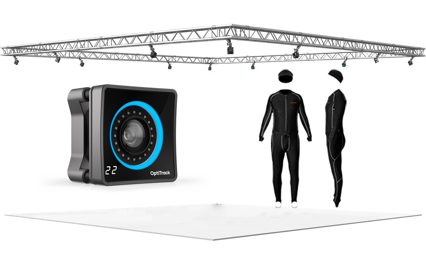Our Full Body Motion Capture Package uses OptiTrack technology and supports up to three actors simultaneously, complete with foot capture, an experienced operator, monitoring setup, live preview, and live render.
